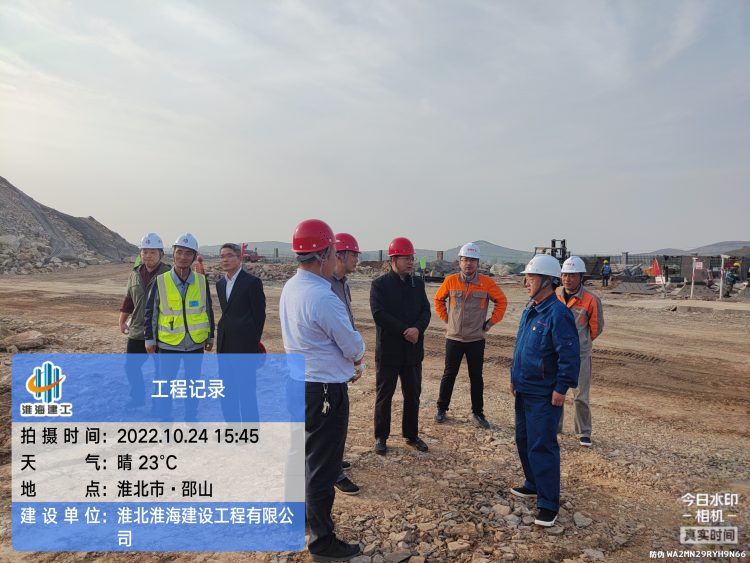 在施工現(xiàn)場,張立哲詳細了解十月份工程施工進度、與淮海建工項目負責人深入交談,協(xié)商解決項目建設中遇到的困難和問題,并就安全生產(chǎn)、工程進度等工作提出要求。