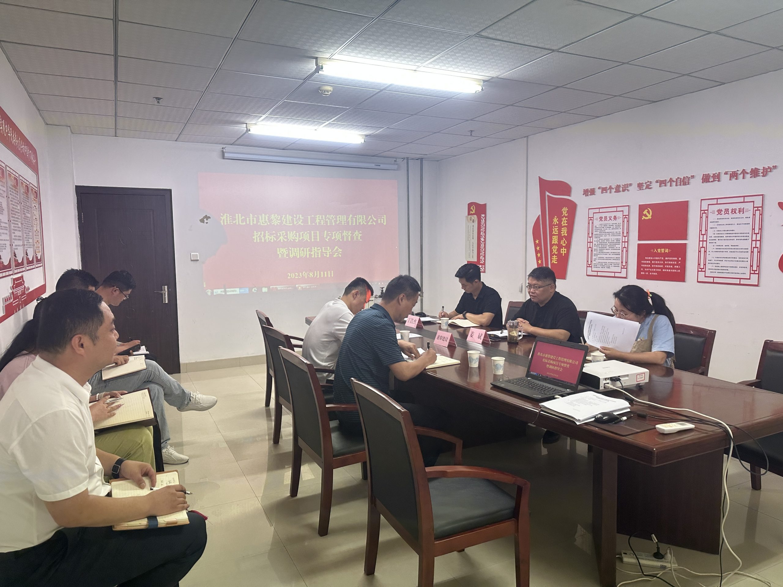 8月11日上午,市建投集團黨委委員、紀委書記、監(jiān)察專員姜斌一行到淮北市惠黎建設工程管理有限公司調研指導工作。姜斌一行實地查看了惠黎建設公司的辦公場所、開評標場所和招標代理業(yè)務的相關資料,惠黎建設主要負責人匯報了公司今年以來的業(yè)務發(fā)展情況和下一步工作打算。參會的集團公司紀委工作人員就風險管控、提質增效、精細化管理等方面給予指導。