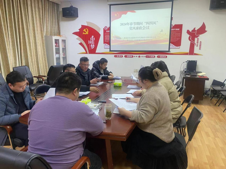 2024年春節(jié)將至,為貫徹落實(shí)《市建投集團(tuán)紀(jì)委關(guān)于做好2024年元旦春節(jié)期間糾“四風(fēng)”樹(shù)新風(fēng)工作的通知》文件精神,勞代公司黨支部召開(kāi)了2024年春節(jié)前糾“四風(fēng)”黨風(fēng)廉政會(huì)議,全體黨員及公司員工參加了本次會(huì)議。