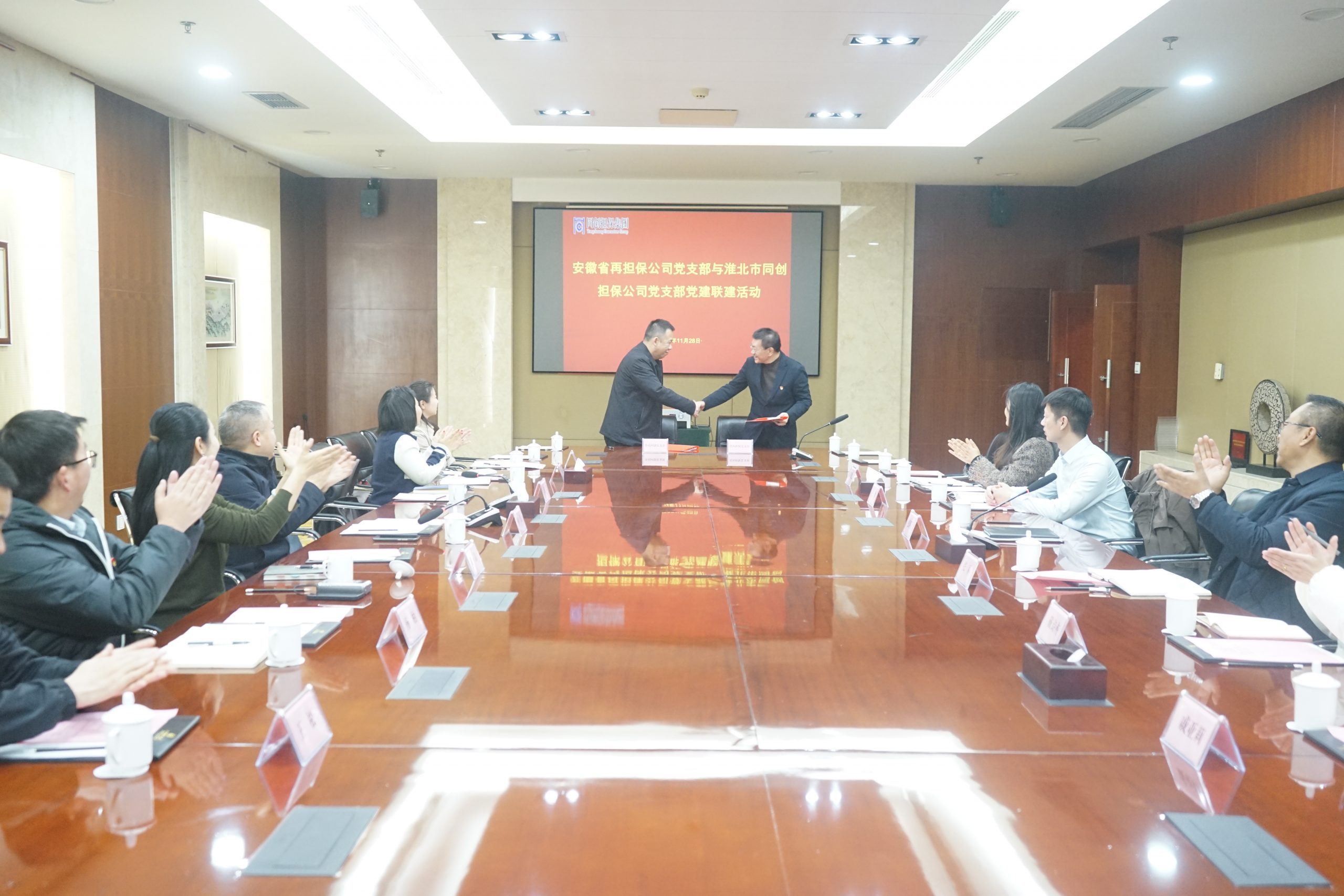 黨建聯(lián)建強(qiáng)擔(dān)當(dāng),攜手共進(jìn)促擔(dān)?!不帐≡贀?dān)保黨支部與淮北市同創(chuàng)擔(dān)保黨支部成功舉行黨建聯(lián)建簽約儀式