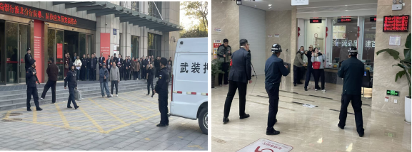本次演練聚焦實(shí)戰(zhàn)化要求,設(shè)置兩大高風(fēng)險(xiǎn)場景,場景一:武裝押運(yùn)車組遭遇“歹徒”暴力搶劫;場景二:營業(yè)網(wǎng)點(diǎn)遭遇“歹徒挾持人質(zhì)”搶劫,全流程模擬突發(fā)事件處置。