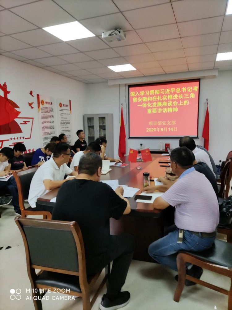 9月14日上午,淮海建工公司項目部黨支部在公司二樓黨員活動室召開支部大會,傳達(dá)學(xué)習(xí)習(xí)近平總書記視察安徽、在扎實推進(jìn)長三角一體化發(fā)展座談會上的重要講話精神,支部全體黨員參加了會議。