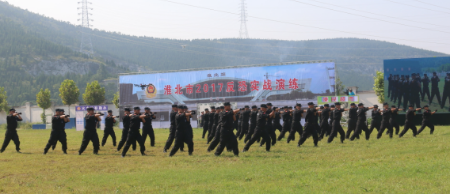 為打牢反恐防恐基礎(chǔ),提高反恐應(yīng)急處置能力,在淮北市委、市政府、集團(tuán)公司黨委的統(tǒng)一領(lǐng)導(dǎo)下,市反恐辦工作領(lǐng)導(dǎo)小組于2017年9月12日在武警支隊(duì)舉行了大型反恐實(shí)戰(zhàn)演練。在演練工作籌劃、準(zhǔn)備、預(yù)演、彩排、執(zhí)行過程中,公司領(lǐng)導(dǎo)班子高度重視,在人力、財(cái)力、物力方面都給予大力支持和保障,在日常訓(xùn)練的基礎(chǔ)上加強(qiáng)了保安隊(duì)伍的實(shí)戰(zhàn)演練,并指派專職教官,帶領(lǐng)押運(yùn)特勤隊(duì)員頂驕陽、冒酷暑,不畏困難,積極備戰(zhàn),全身心投入演練科目訓(xùn)練。9月23日,反恐實(shí)戰(zhàn)演練活動(dòng)如期舉行,參加演練的60名押運(yùn)隊(duì)員無論是在方陣隊(duì)列展示,還是在擒敵拳課目表演,均贏得了廣大市民和各級領(lǐng)導(dǎo)的高度認(rèn)可,以一流的作風(fēng)、一流的訓(xùn)練水平展示在演練場上,高標(biāo)準(zhǔn)、高質(zhì)量完成此次反恐實(shí)戰(zhàn)演練任務(wù),受到了淮北市反恐辦工作領(lǐng)導(dǎo)小組的通報(bào)表揚(yáng)。