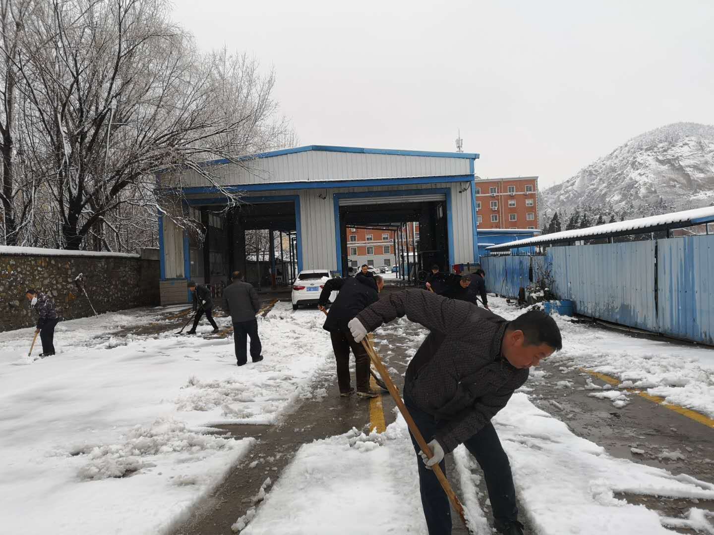 大家手拿鐵鍬、掃帚等除雪工具,對(duì)檢測(cè)站院內(nèi)積雪進(jìn)行清掃。雖然天寒地凍,雪水浸濕了鞋襪,但也毫不在意,勞動(dòng)熱情積極高漲。此次掃雪活動(dòng),不僅避免了車(chē)輛因雪天不能檢測(cè)而脫審,還保障了檢測(cè)安全。