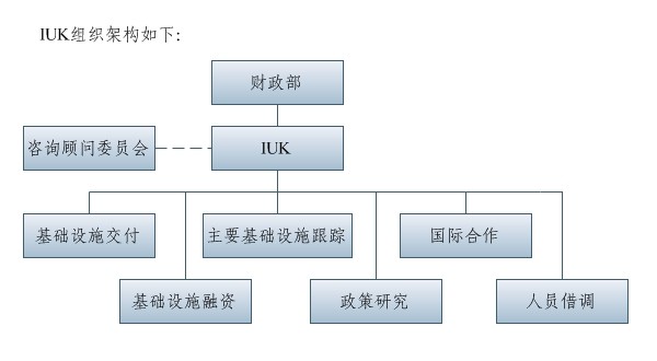 英國PPP管理機構發(fā)展分為兩個階段,第一階段(2010年前),財政部于1997年設立一個PPP工作組,負責PPP相關工作;第二階段(2010年后),財政部正式成立一個部門——基礎設施建設局(IUK, Infrastructure UK),統(tǒng)一負責PPP管理工作。